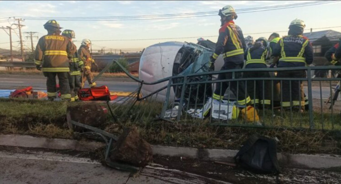 Conductor queda grave tras violenta colisión y volcamiento en Hualpén–Talcahuano